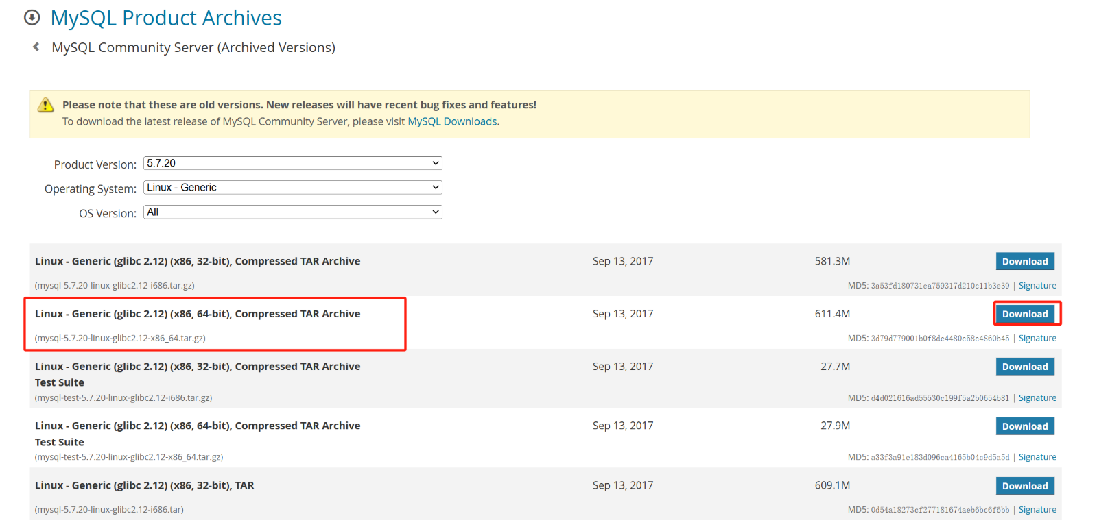 1 | [root@test-server02 src]# ll mysql-5.7.20-linux-glibc2.12-x86_64.tar.gz |